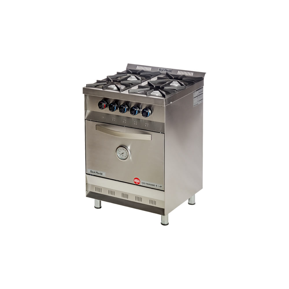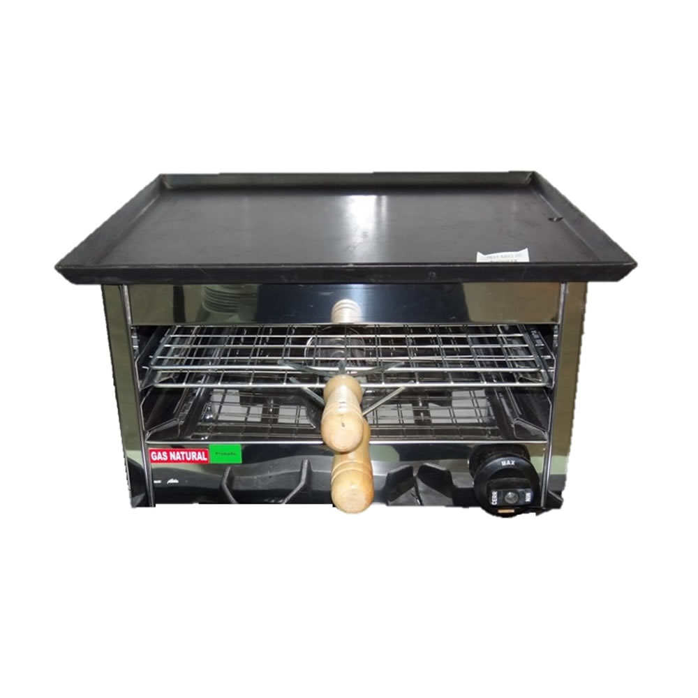 (REJAS DE FUNDICIÓN) Acero inoxidable 430 esmerilado. Cámara de cocción enlozada con piso de tejuelas. 3 Rejillas internas extraíbles de 43 X 44 cm. Bandejas antiderrame de acero inoxidable. Mecheros de aluminio. 24.000 Calorías